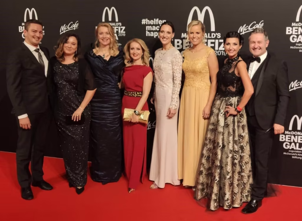 Unter dem Motto „Golden Society – Family & Friends“ fand in München die alljährliche McDonald’s Benefiz Gala statt. Durch das Event und weitere Aktivierungen konnte insgesamt eine Summe von 1.924.968 Euro erreicht werden. Mit der Spendengala wird die wichtige Arbeit der McDonald’s Kinderhilfe Stiftung unterstützt. BdS-Präsidentin und Personalvorstand von McDonald’s Deutschland LLC. Sandra Mühlhause, BdS-Hauptgeschäftsführerin Andrea Belegante sowie auch die ehemalige BdS-Hauptgeschäftsführerin Valerie Holsboer (Vorstand der BA a.D.) waren dabei, um das außerordentliche Engagement der McDonald’s Kinderhilfe Stiftung gebührend zu würden und zu feiern.