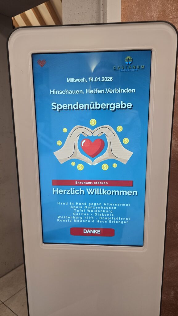 Neben dieser zweckgebundenen Spende konnten wir neun weitere Einrichtungen aus der Region unterstützen – jede mit 500 Euro. Sie alle stehen für Hilfe, die ankommt: bei Menschen, die gerade Unterstützung brauchen, bei Familien, Seniorinnen und Senioren, bei Menschen in Not oder in schwierigen Lebenssituationen.
